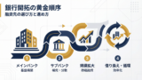 - 次の1件だけでなく、2件目・3件目まで含めた銀行開拓順序を考えた